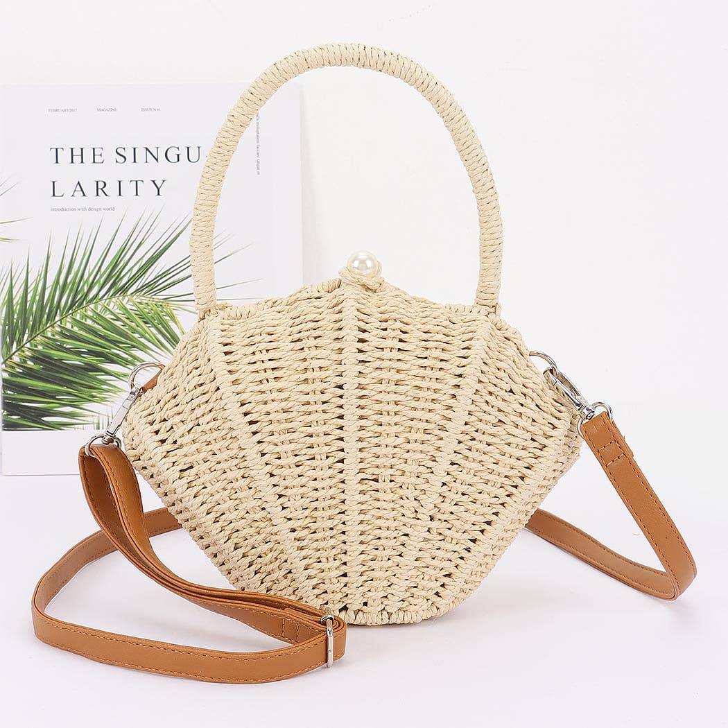 This Handmade Bamboo Clutch is a masterpiece of hand - crafted design. It features an intricately woven structure, showcasing the natural texture and beauty of bamboo. The top of the clutch is adorned with a pearl embellishment, adding a touch of elegance. It comes with a detachable leather strap, providing versatility in carrying options. Ideal for those who appreciate unique, artisanal accessories.