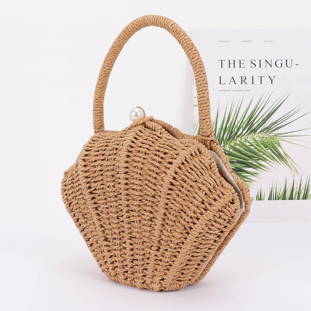 This Handmade Bamboo Clutch is a masterpiece of hand - crafted design. It features an intricately woven structure, showcasing the natural texture and beauty of bamboo. The top of the clutch is adorned with a pearl embellishment, adding a touch of elegance. It comes with a detachable leather strap, providing versatility in carrying options. Ideal for those who appreciate unique, artisanal accessories.