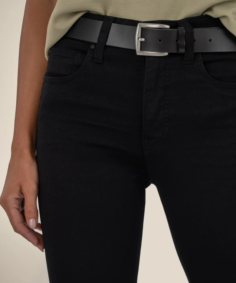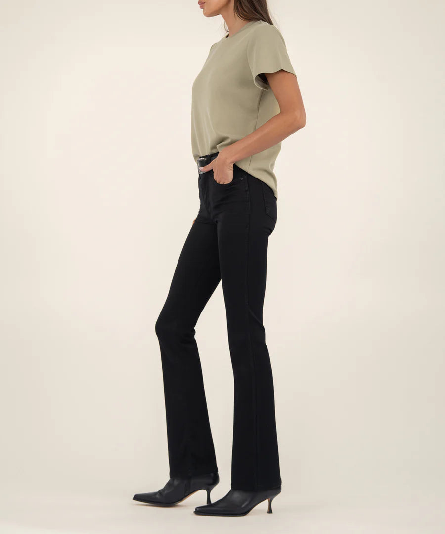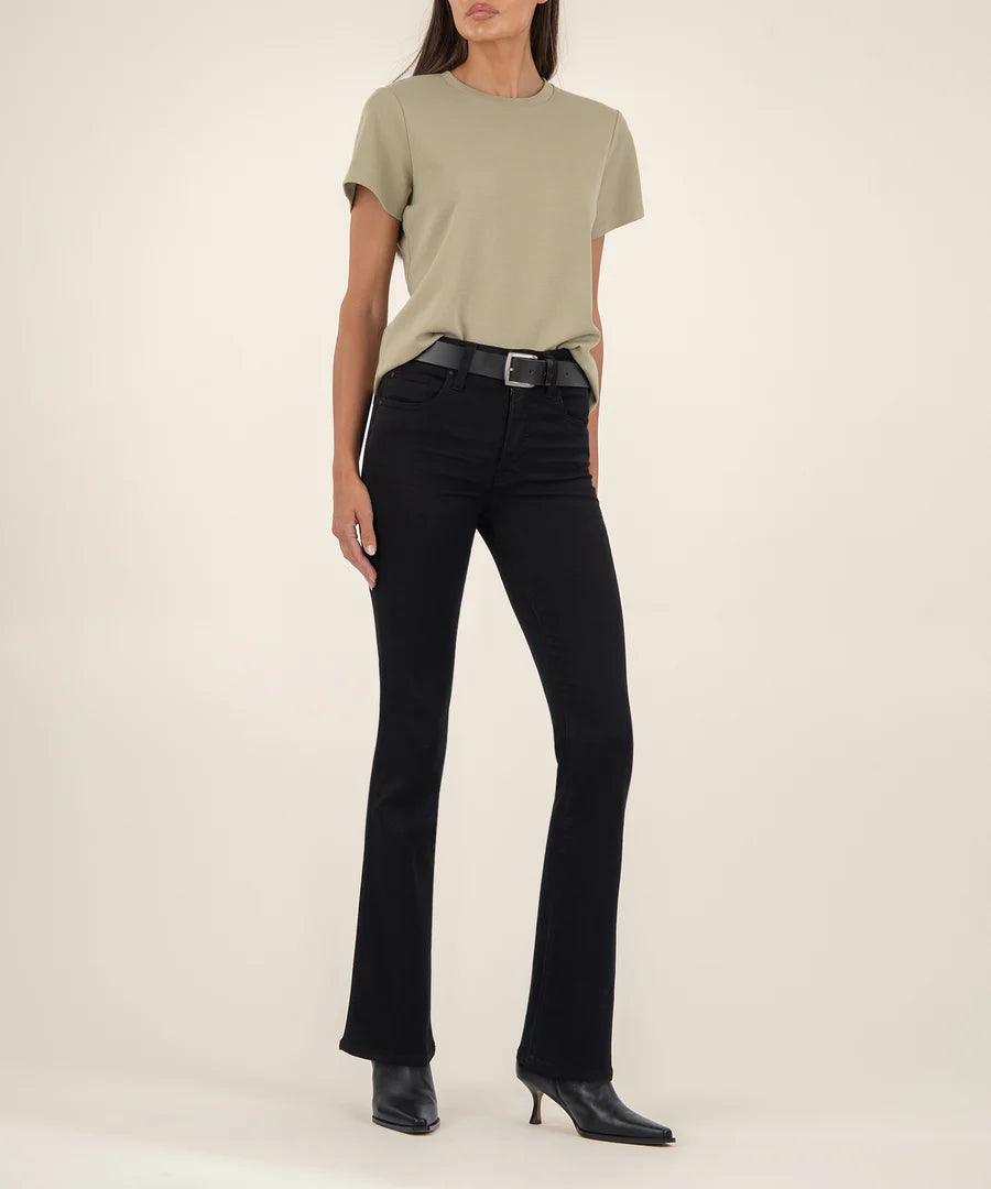 These black bootcut jeans feature Fab Ab and super stretchy material for a flattering, flexible fit. A clean, streamlined look that’s perfect for dressing up or keeping it casual.