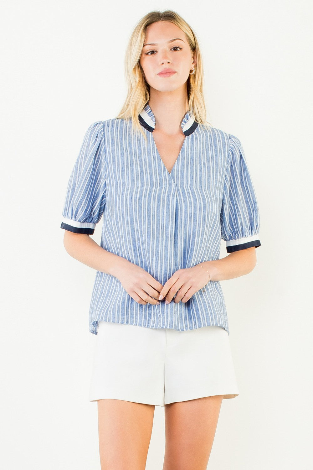 Blue Striped V Neck