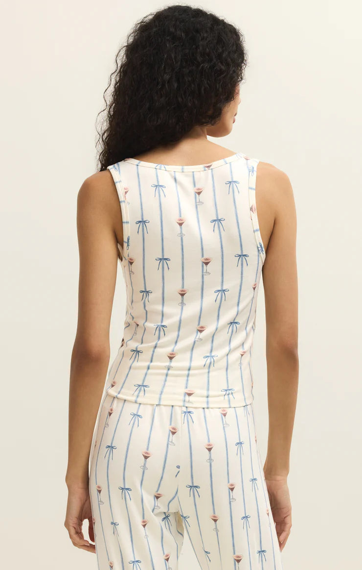 This silky jersey tank has a smooth, breathable texture that feels cool and cozy at once. The scoop neckline and fitted shape make it a favorite for unwinding, movie marathons, or lazy weekend mornings.