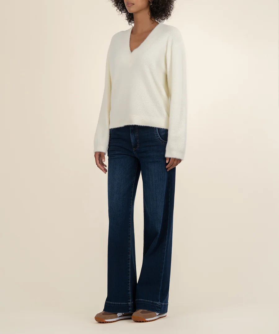 Cozy meets chic in this super soft sweater featuring a relaxed boxy fit and a flattering deep V-neck. Perfect for layering or wearing on its own, it’s your new go-to for effortless comfort and laid-back style.