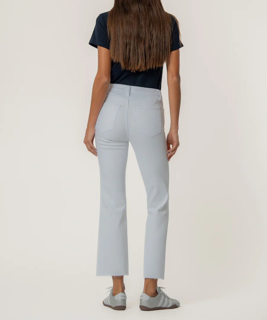 Refresh your wardrobe with these high-rise ankle flare jeans in stunning optic white. Designed with stretchy material, they deliver a perfect balance of comfort and contour. The clean optic white finish and modern ankle flare silhouette make them a must-have for effortlessly polished style.