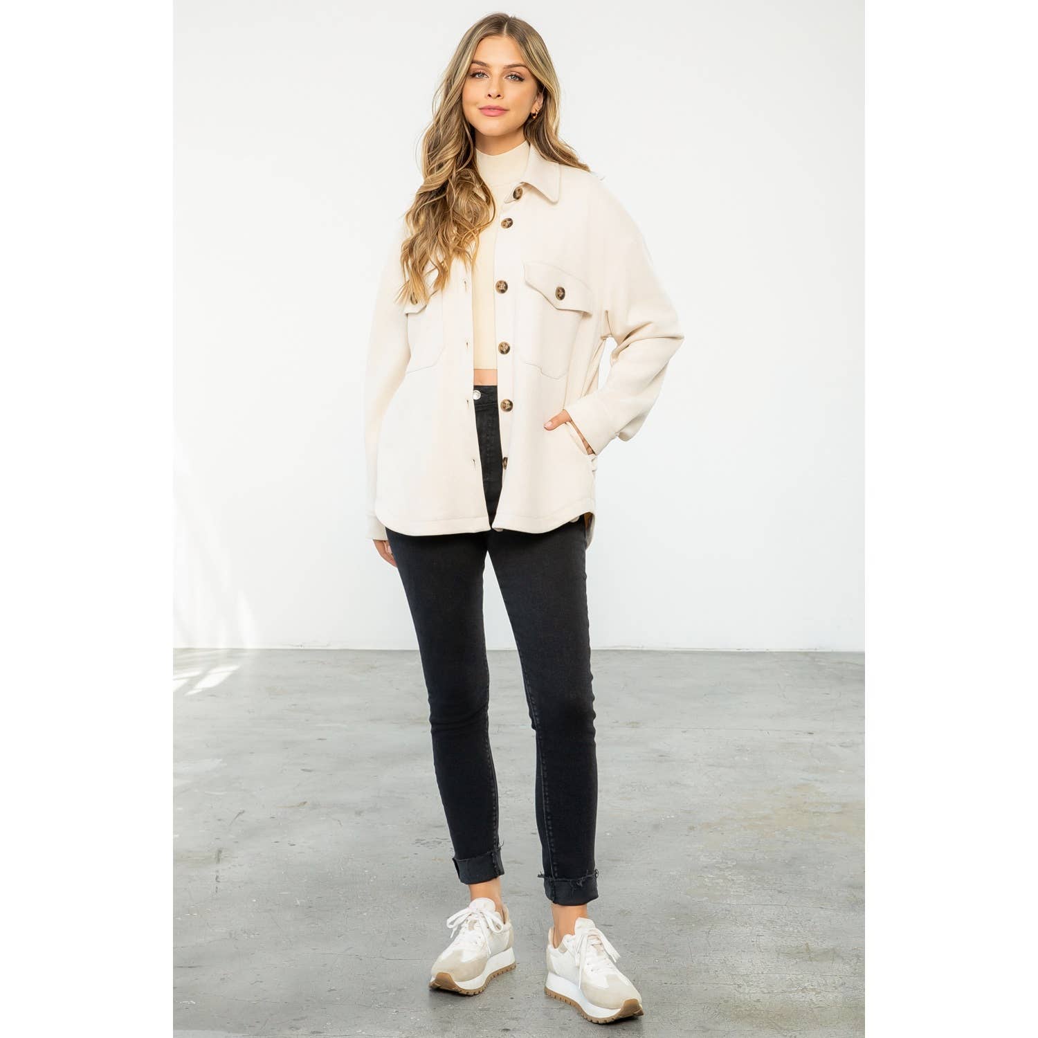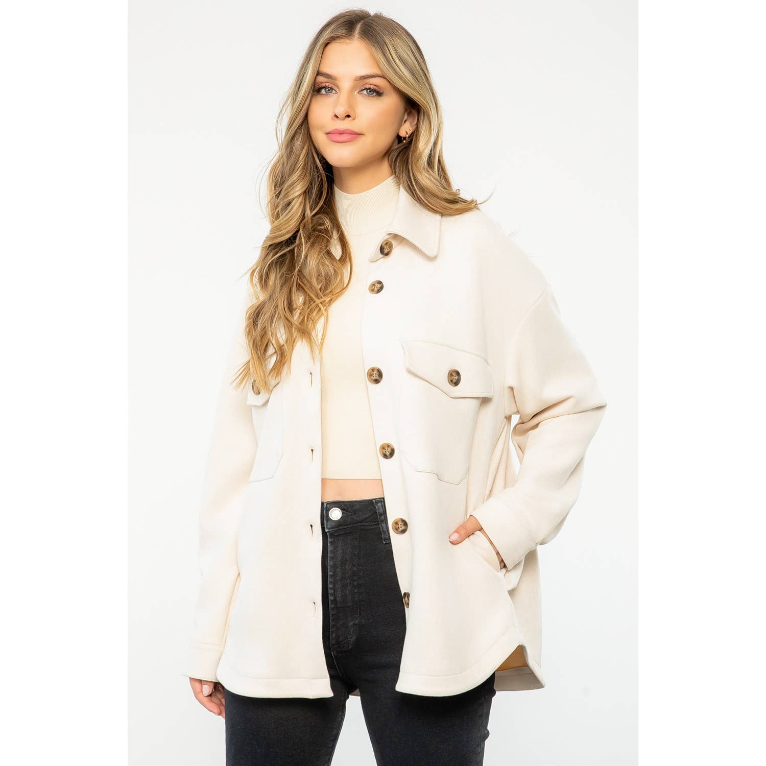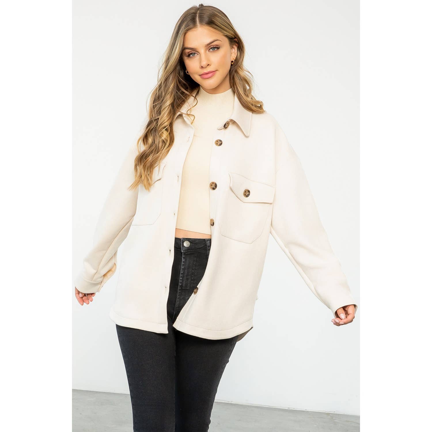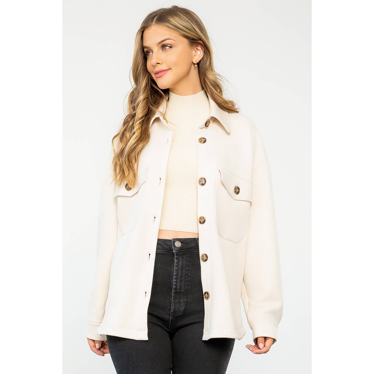 Suede Button Up Jacket WOVEN / 92% Polyester, 8% Spandex / Lining: 100% Polyester