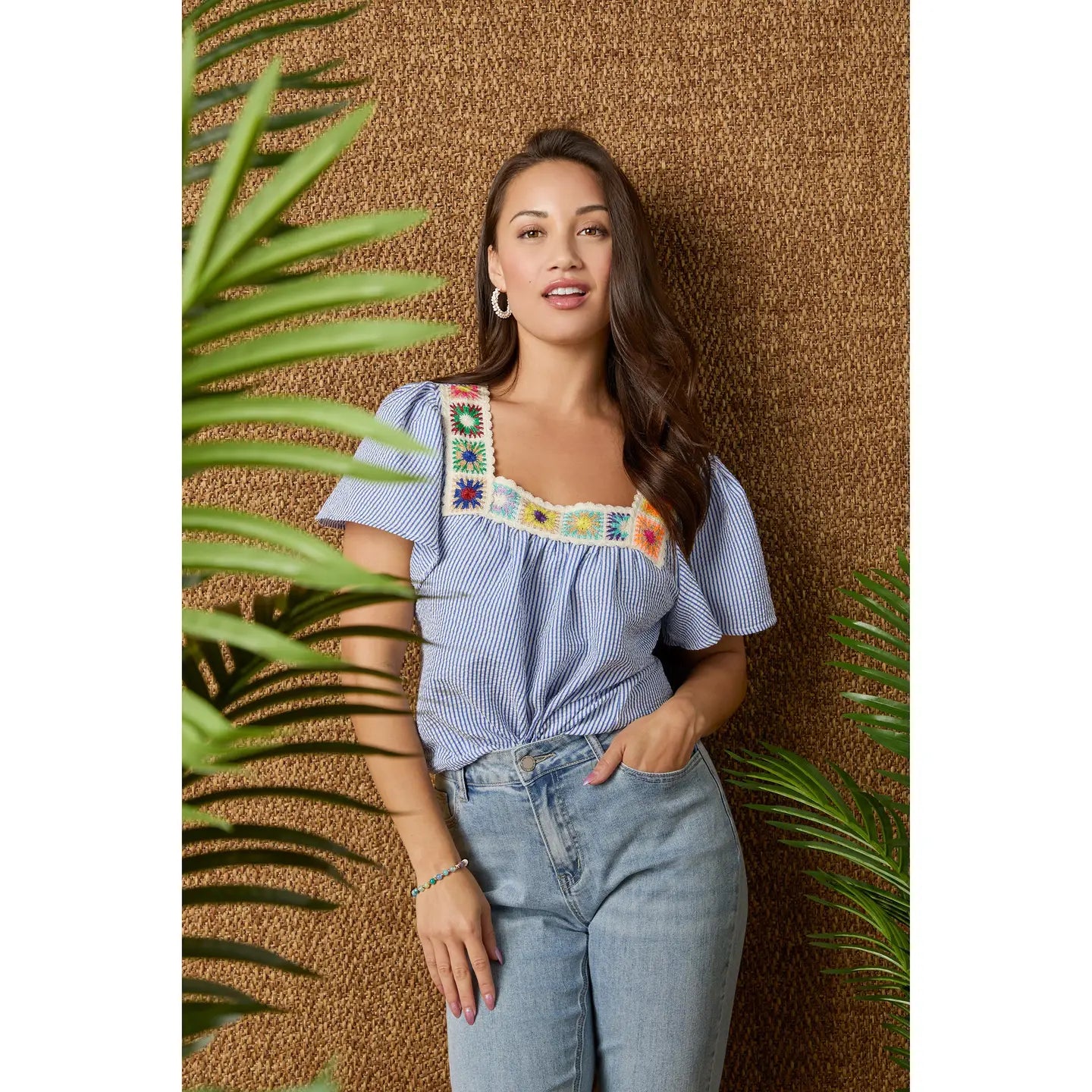 Looking for a top that's both chic and feminine? Look no further than our Amy Top with Crochet Trim. The intricate crochet details add a touch of elegance, making it a must-have in your closet. Pair it with your favorite jeans for a casual look or dress it up with a skirt for a night out. Materials: Polyester